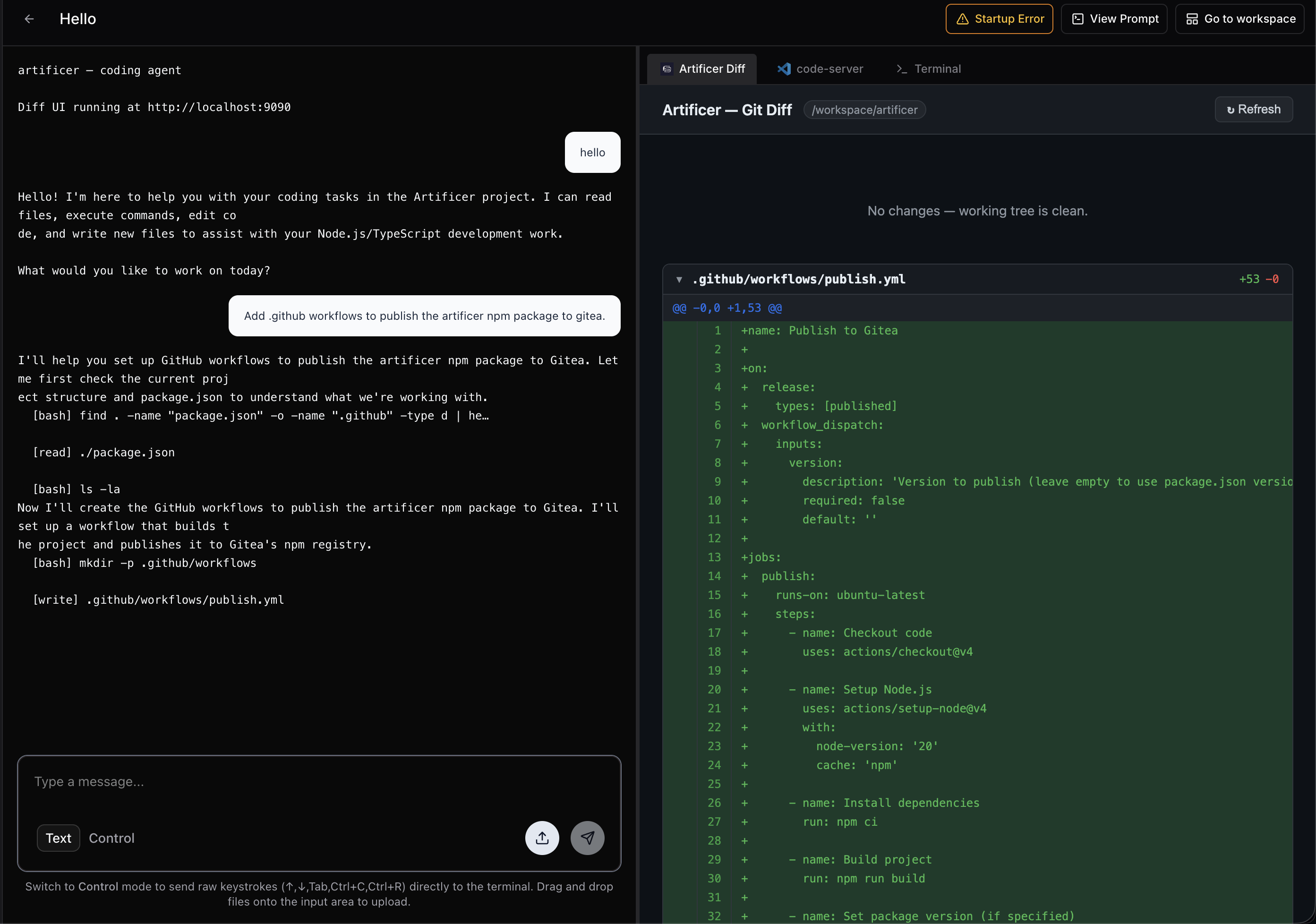 At first I tried using opencode but ran into issues with the opencode UI requiring a subdomain (turns out most of the web based IDEs aren’t designed to run behind a reverse proxy openhands, opencode, bolt.diy). When that didn’t work I tried my hand at building my own agent using the pi framework